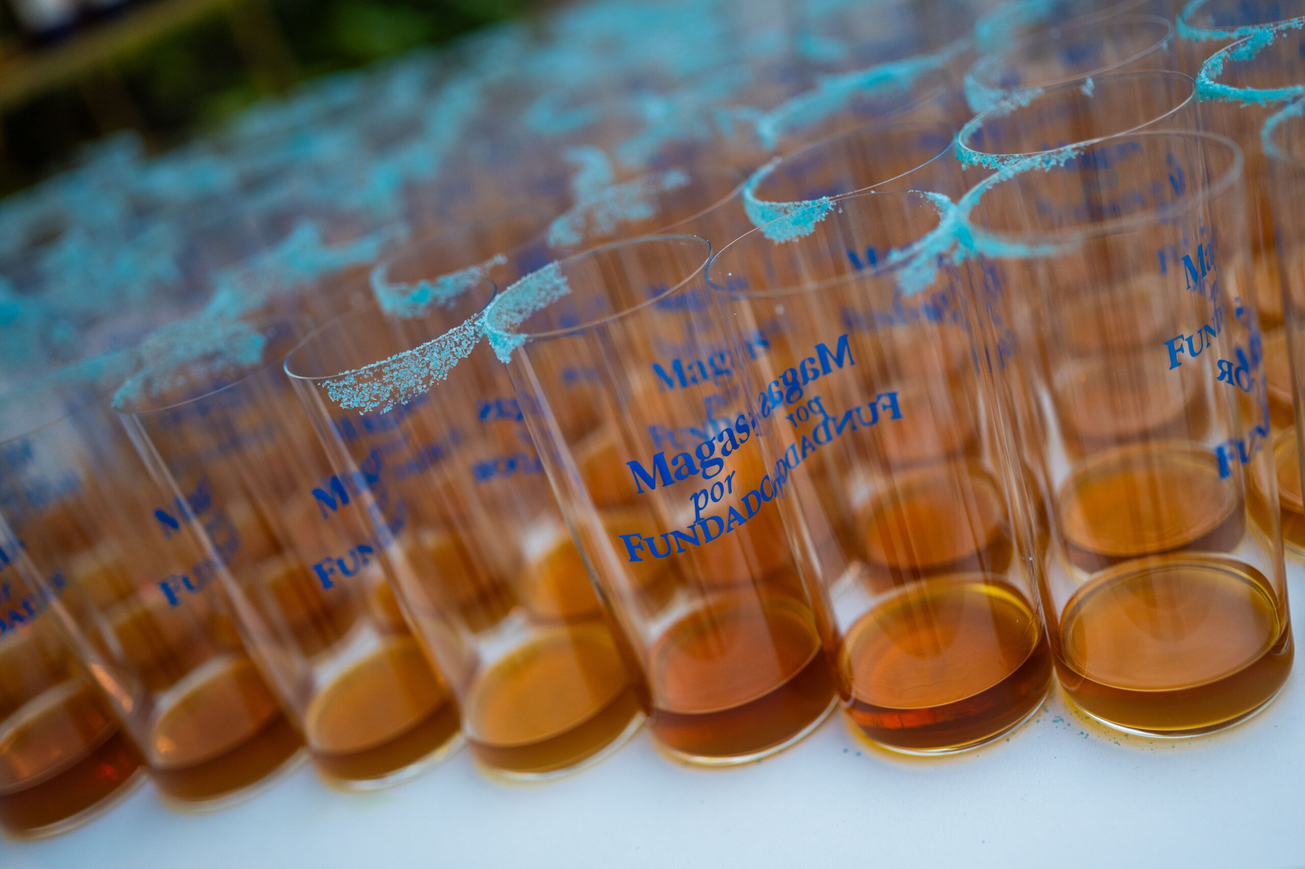 - Sal azul en el borde del vaso