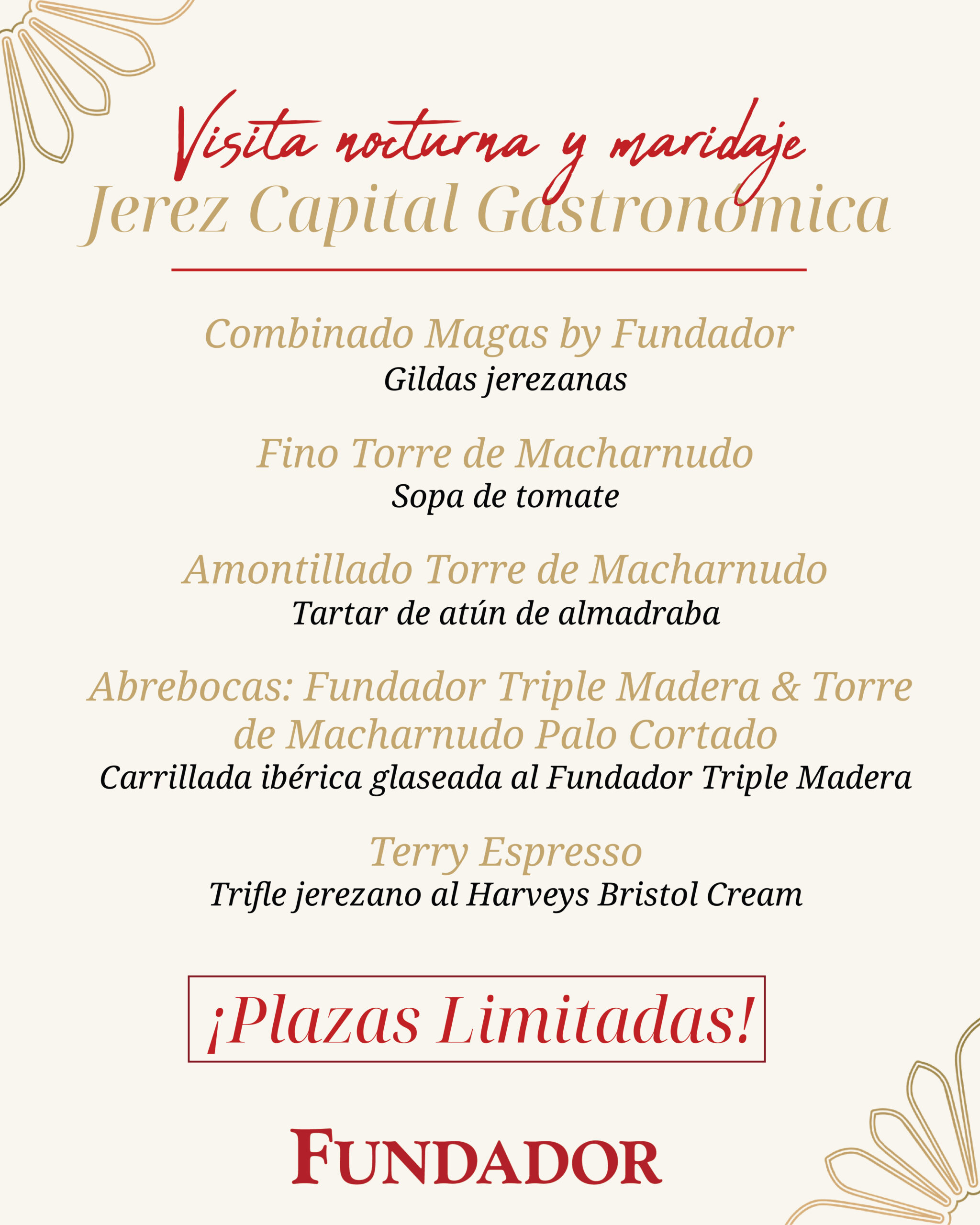 Este 28 de febrero, date el lujo de vivir una experiencia única en nuestras históricas bodegas y deleitarte con lo mejor de la gastronomía andaluza en Casa Fundador Restaurante.